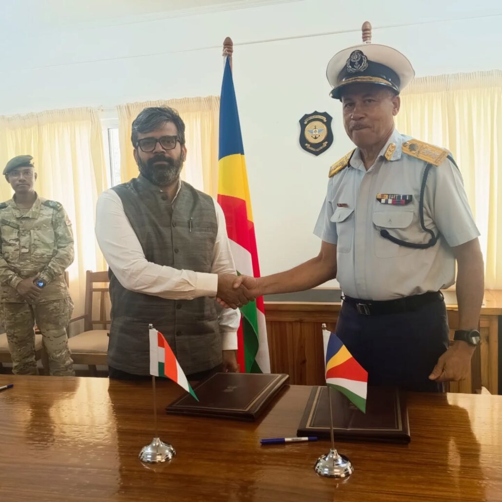 India and Seychelles signed a Memorandum of Understanding for donation of 10 TATA Utility Vehicles & 05 Laser boats to Seychelles Defence Forces.