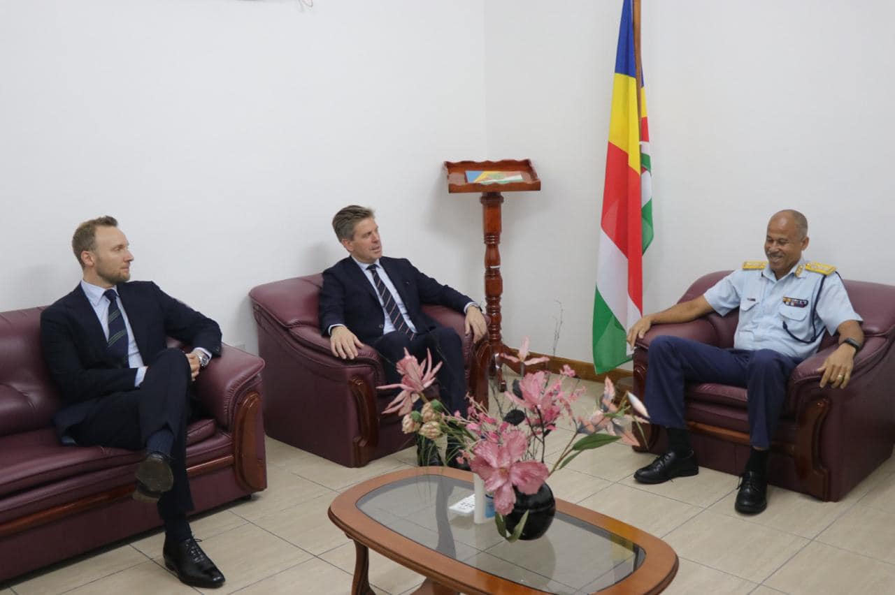 Ambassador designate of the Kingdom of Denmark to the Republic of Seychelles, H.E Mr Stephan Schonemann, paid a courtesy visit to the Chief of Defence Forces Major General Michael Rosette this morning at the Defence Forces Headquarters- Bel Eau. Present were the delegation who accompanied Ambassador Schonemann and the Deputy Chief of Defence Forces Brigadier Jean Attala.