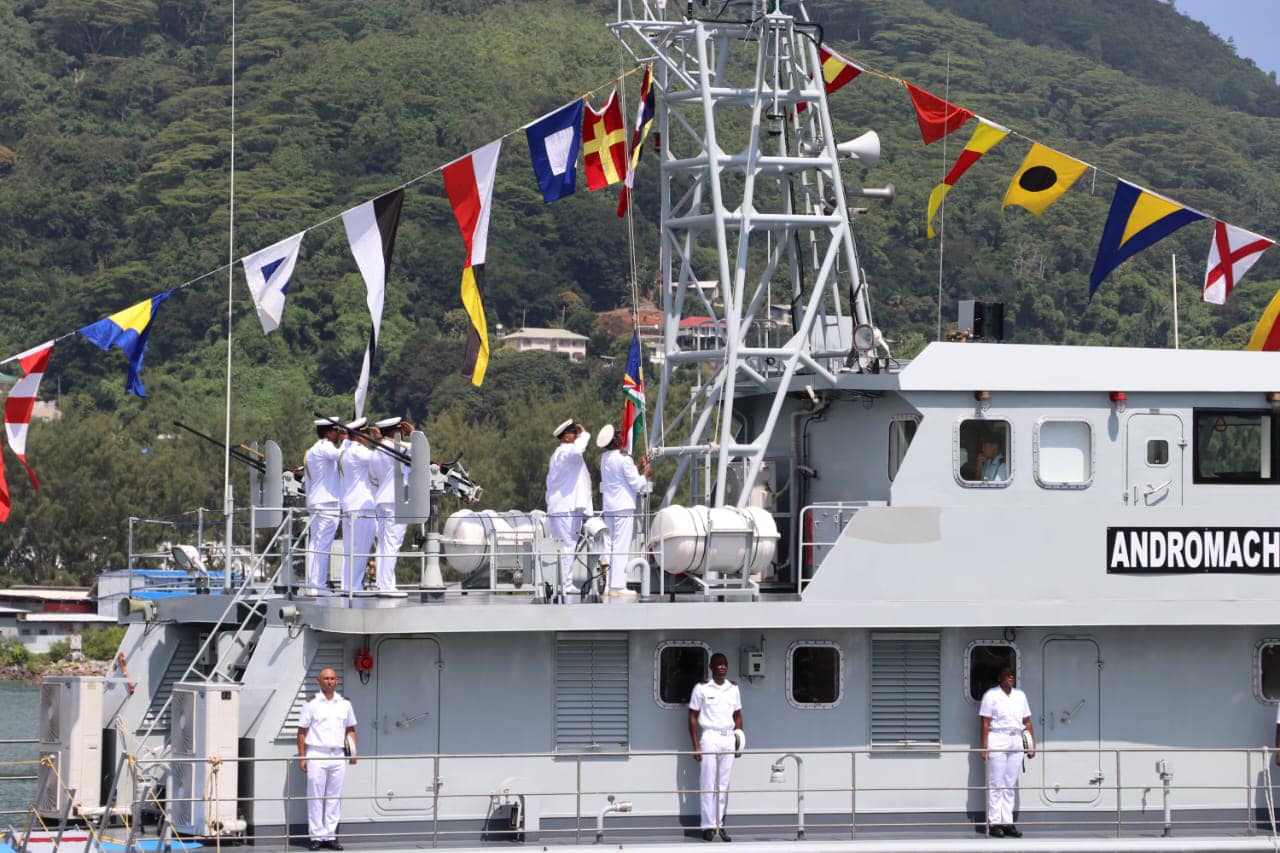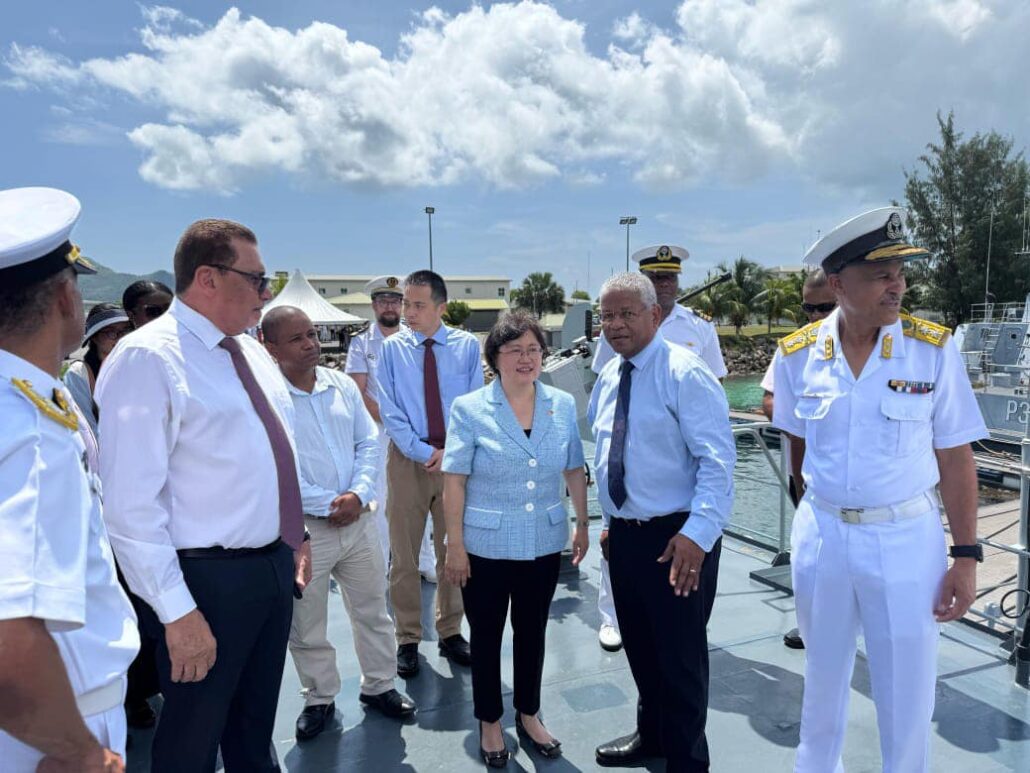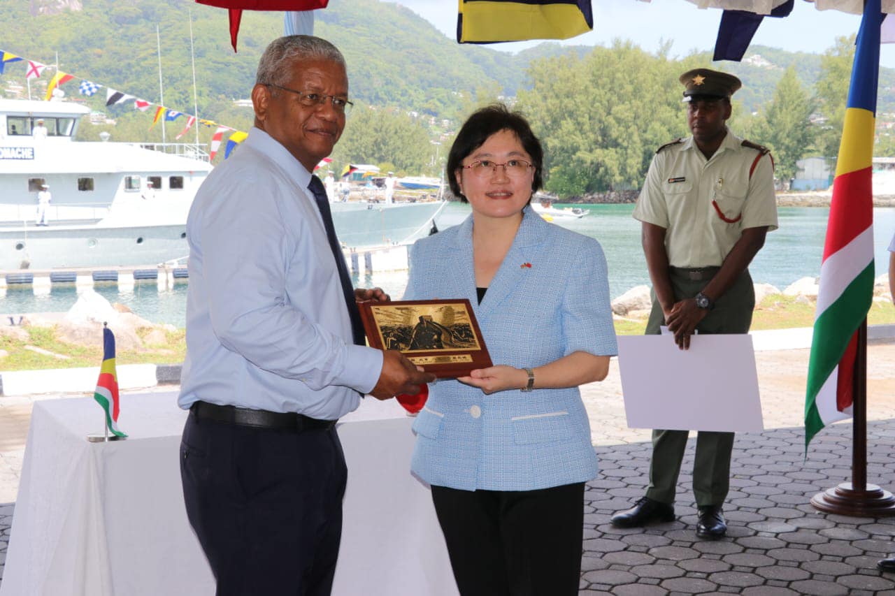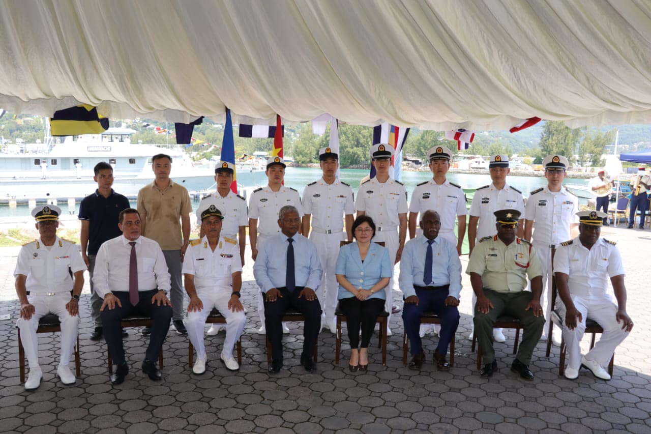 The ceremony was held at the Seychelles Coast Guards Base in the presence of the Commander In Chief President Wavel Ramkalawan, Chinesse Ambassador to Seychelles H.E Ms. Lin Nan, Commissioner of Police Mr. Ted Barbe, ministers, dignitaries, members of the Defence Forces council and military personnel from both the SDF and Chinesse Armed Forces.