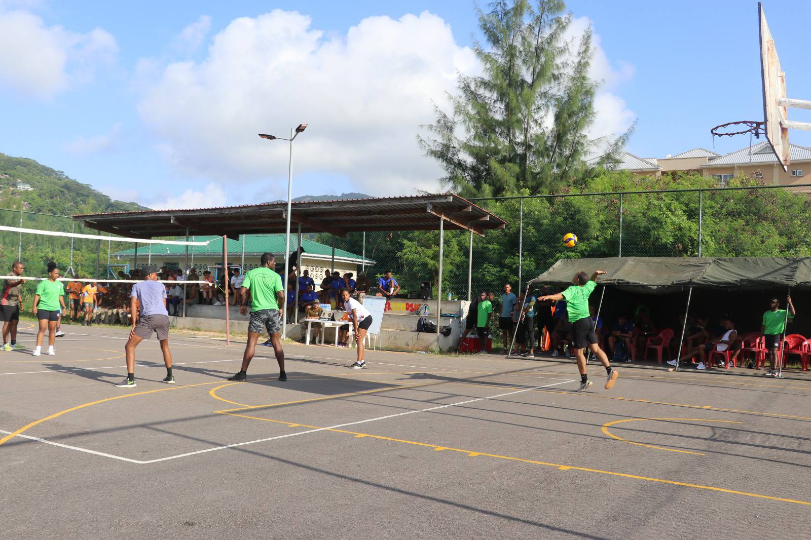 Inter-Unit Volleyball Competition unfolds in full swing. Military personnel from various units battling it out on the court in a thrilling display of strength, agility and teamwork. #teamwork #StrongerTogether