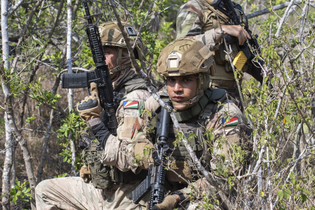 Cet exercice qui a lieu tous les deux ans sur l’île de La Réunion constitue un temps fort de la coopération militaire franco-seychelloise et s’inscrit dans un contexte régional plus général visant à renforcer la coordination entre partenaires régionaux de l’océan Indien. Cette année, le scénario opérationnel reposait sur une situation réaliste combinant une catastrophe naturelle majeure (cyclone), suivie d’une dégradation sécuritaire nécessitant une réponse militaire rapide. Dans ce cadre, les forces terrestres, aériennes et navales engagées se sont entraînées à planifier et conduire des opérations conjointes, à coordonner leurs actions et à interagir efficacement dans un environnement multinational : débarquement terrestre, prise de position après aérolargage, assaut en zone habitée, etc.