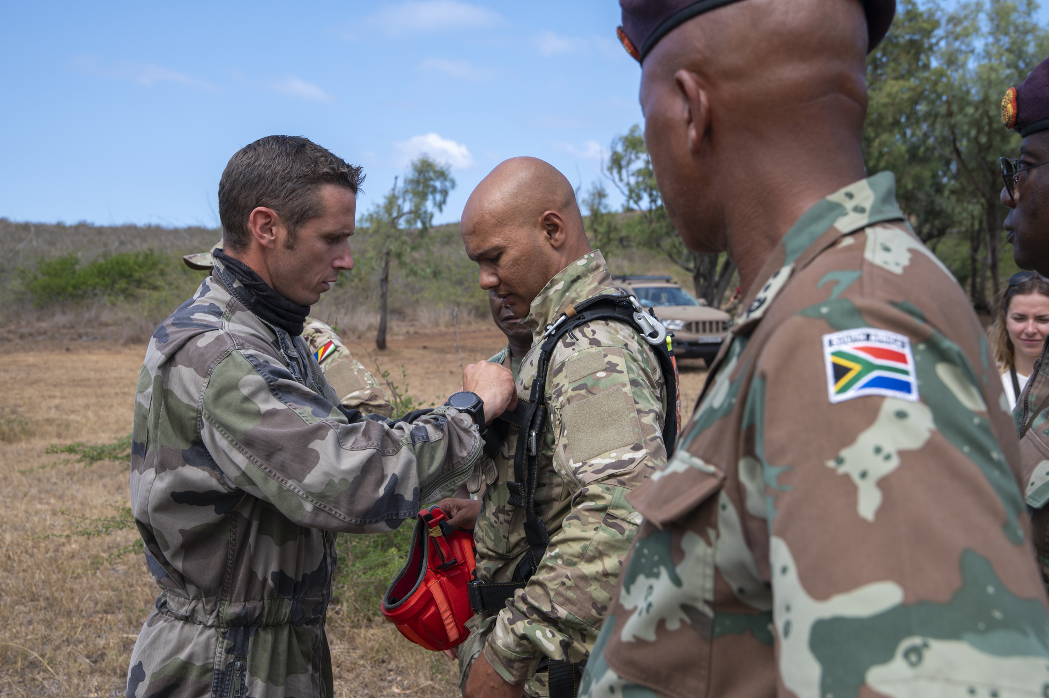 Intégrés à une compagnie de combat du 2ème Régiment Parachutiste d’Infanterie de Marine, unité avec laquelle les TAZAR sont habitués à échanger, les militaires seychellois ont participé pour la première fois de l’exercice PAPANGUE à un saut en parachute en situation de combat. Ce saut vient concrétiser l’acquisition de compétences opérationnelles particulières développées au cours de ces dernières années et renforce l’interopérabilité entre les militaires îles cousines.