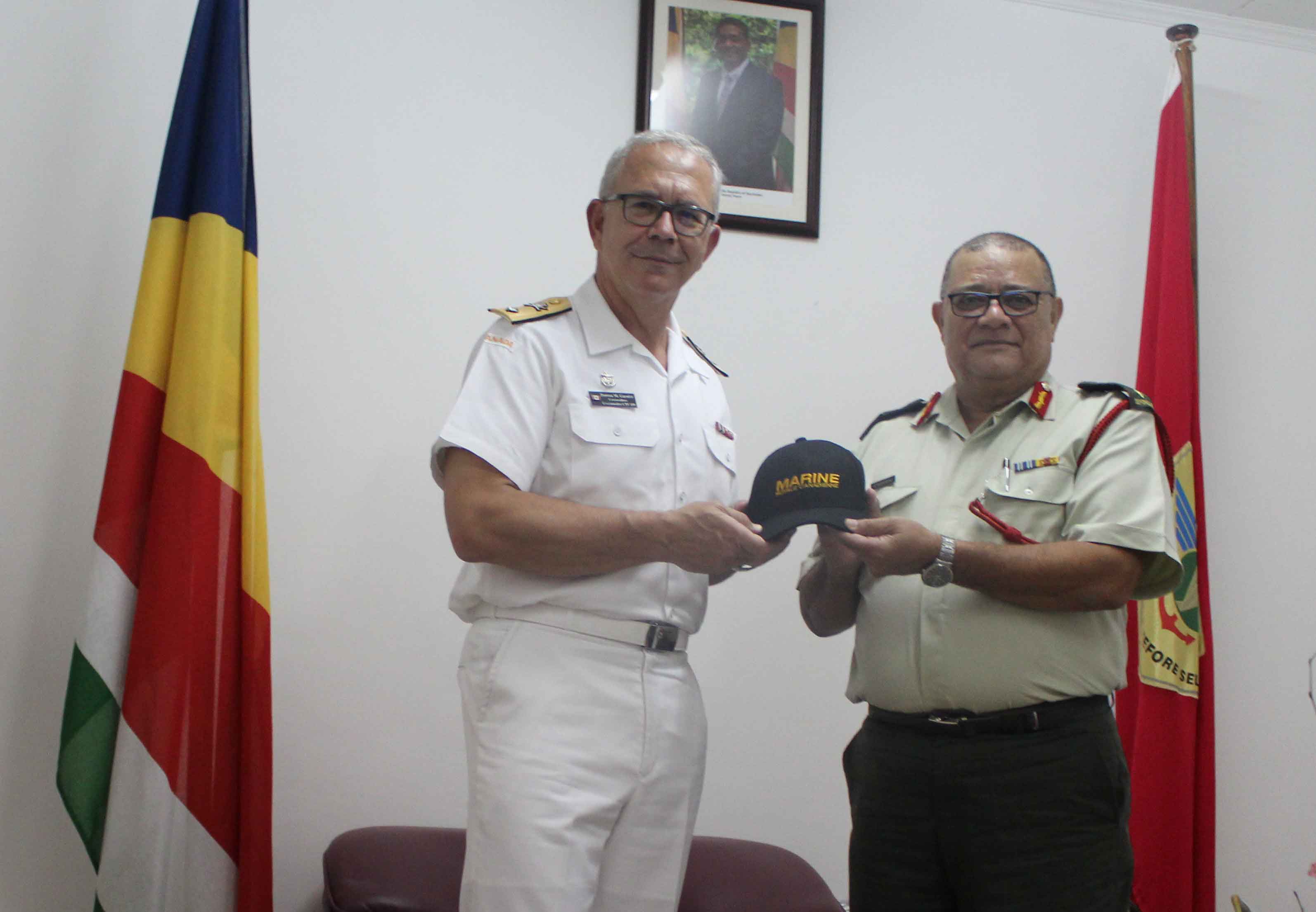 courtesy call on the CDF. During his visit in Seychelles Commodore Garnier met with the Chief of