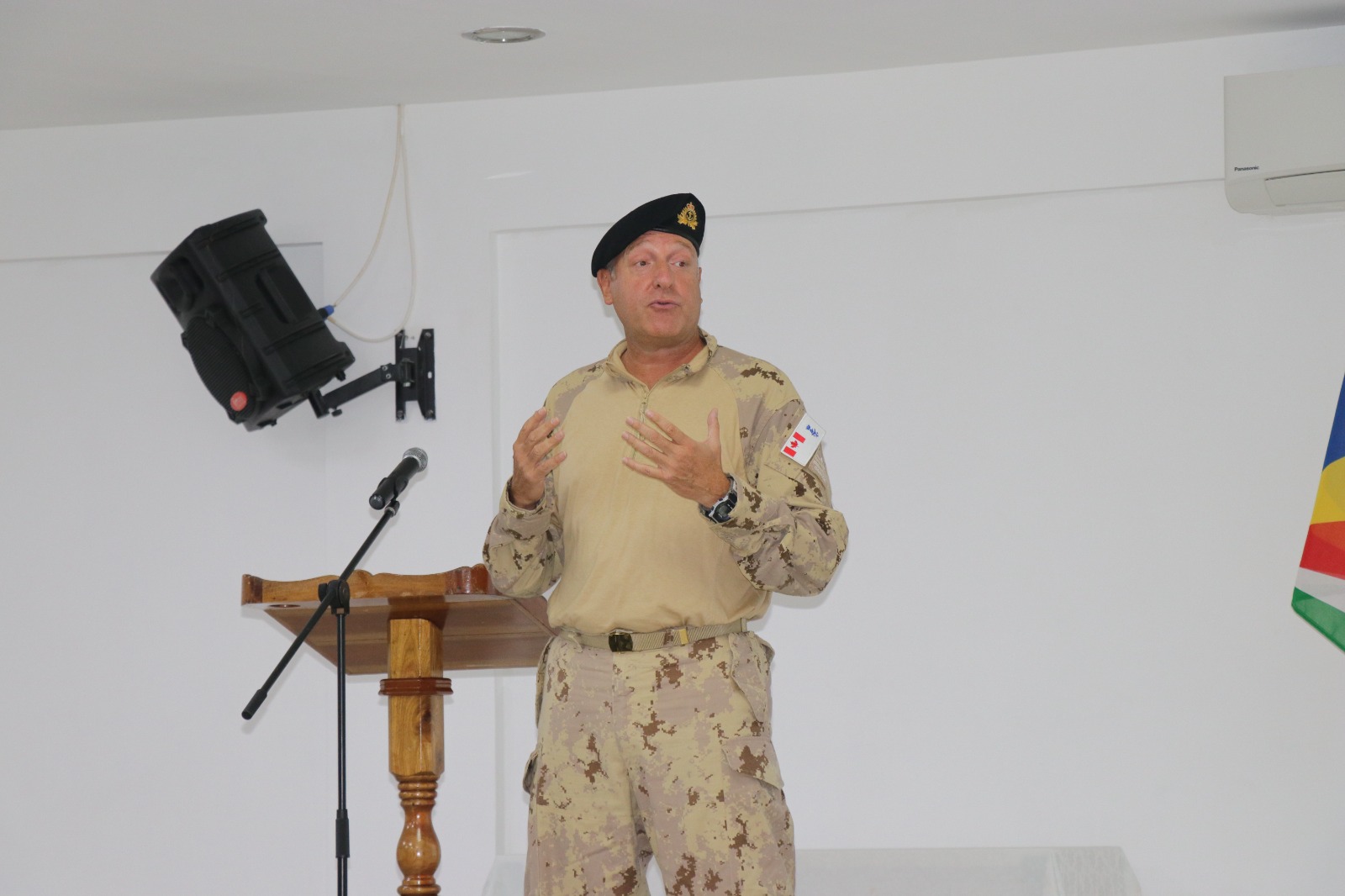 Commander Alexis Dieryckx, representing CMF and Lieutenant Colonel Archil Mondon, representing the Seychelles Defence Forces, addressed the facilitators and participants gathered this morning. Also present were senior SDF officers, Deputy Commissioner of Police, resident UNODC Associate Program Officer, and observers from CMF.