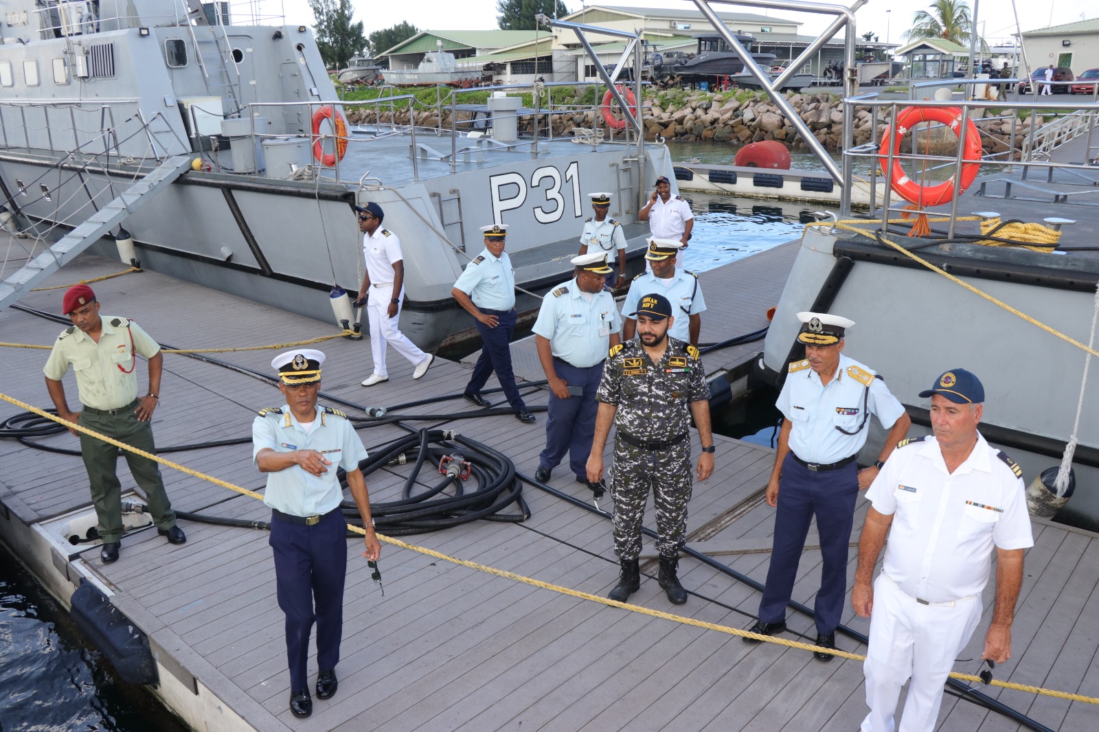 The crew under the command of Capt Lyndon Lablache was welcomed by the Chief of Defense Forces Brigadier Michael Rosette, Chief of Staff Colonel Jean Attala, members of the DFC, and senior officers of the Seychelles Coast Guard.