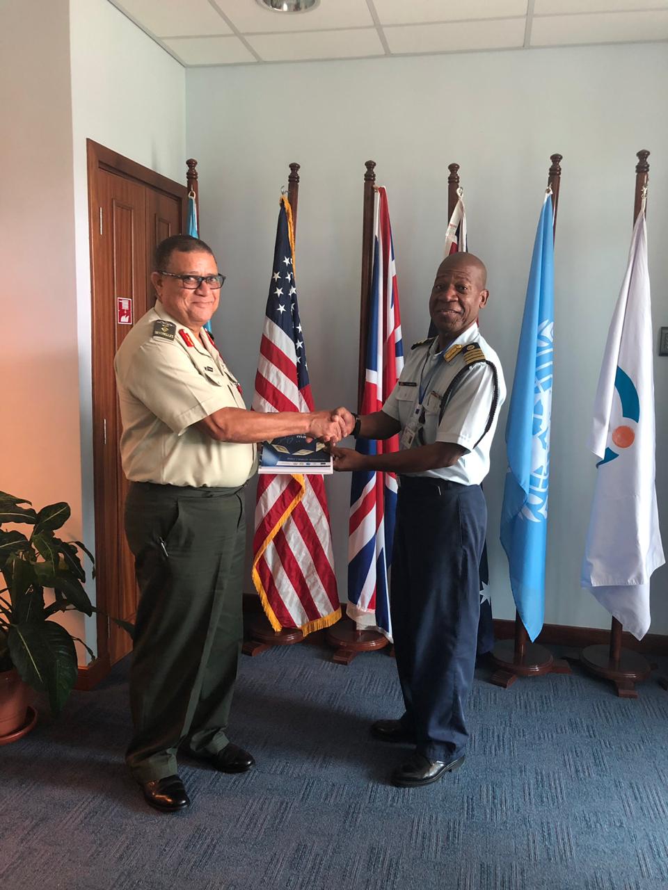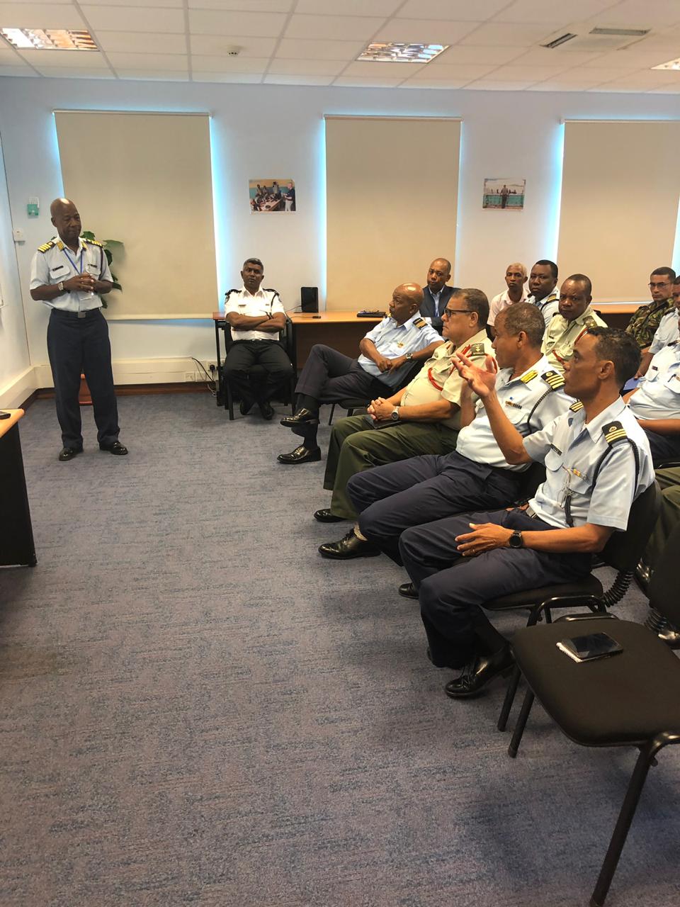 On 19 Sep 2019, the Chief Of Defence Forces (CDF) Colonel Clifford Roseline led a group of senior SPDF officers on a familiarisation visit at the Regional Centre for Operation Coordination (RCOC) based at Bois de Rose Avenue on Mahe.
