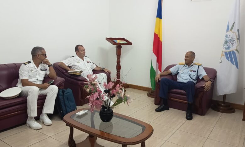 Le 31 mars dernier, le capitaine de vaisseau Jérôme LARRAZ, commandant de la zone maritime sud de l’océan Indien et adjoint interarmées du général commandant les FAZSOI, a rendu une visite de courtoisie au major-général Michael ROSETTE, Chef des Forces de Défense des Seychelles. Le CV LARRAZ était accompagné par le capitaine de frégate Nicolas ROCHEFEUILLE, attaché de défense accrédité pour les Seychelles. Les échanges ont porté sur les défis communs dans le domaine de la sécurité maritime et de la coopération franco-seychelloise pour les opérations maritimes alors que venait de s’achever l’exercice PAPANGUE à La Réunion auquel un important contingent des forces de défense des Seychelles a participé. La présence du patrouilleur outre-mer « AUGUSTER TECHER » dans le port de Victoria a également été mis à l’honneur, permettant de souligner la haute interopérabilité entre les forces seychelloises et françaises dans la sauvegarde et la protection des espaces maritimes régionaux.